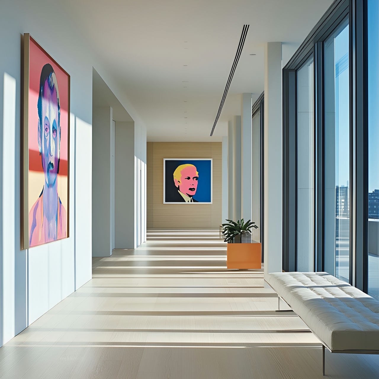 - Tons neutres : Les tons neutres comme le beige ou le taupe sont courants dans les pièces de galerie. Ces couleurs procurent de la chaleur et de la subtilité, créant un environnement accueillant et calme. Les murs neutres peuvent mettre en valeur les textures et les couleurs des œuvres d’art sans les dominer.
