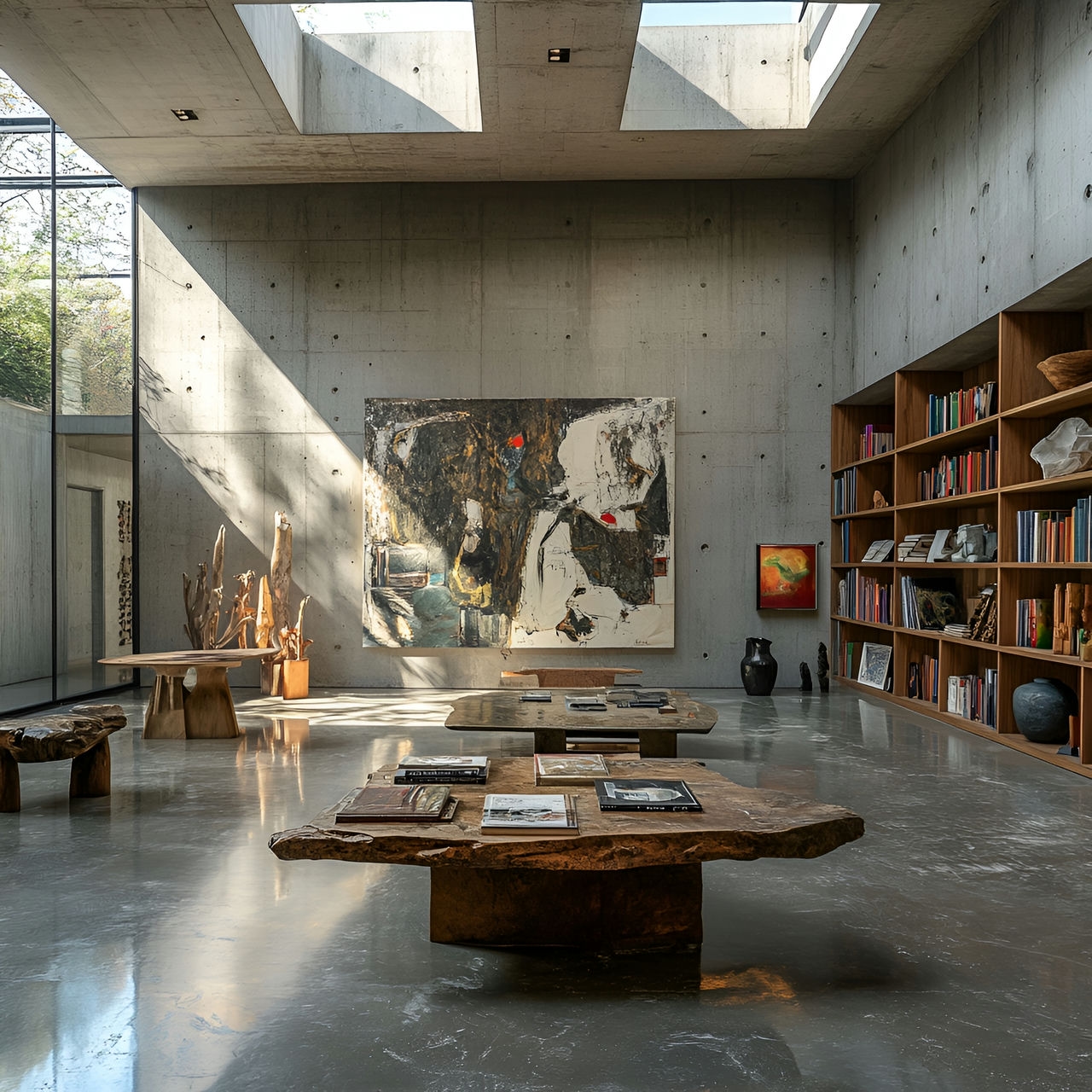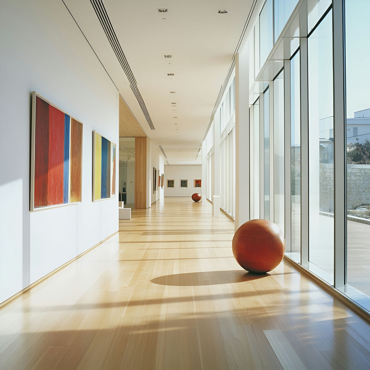 - Revêtement de Sol : Les choix de revêtement de sol dans une rénovation de galerie sont essentiels pour l’esthétique et la praticité. Le sol doit être durable pour résister au trafic piétonnier tout en ne détournant pas l’attention de l’art. Les options peuvent inclure du bois dur, du béton poli ou des matériaux spécialisés de qualité muséale.