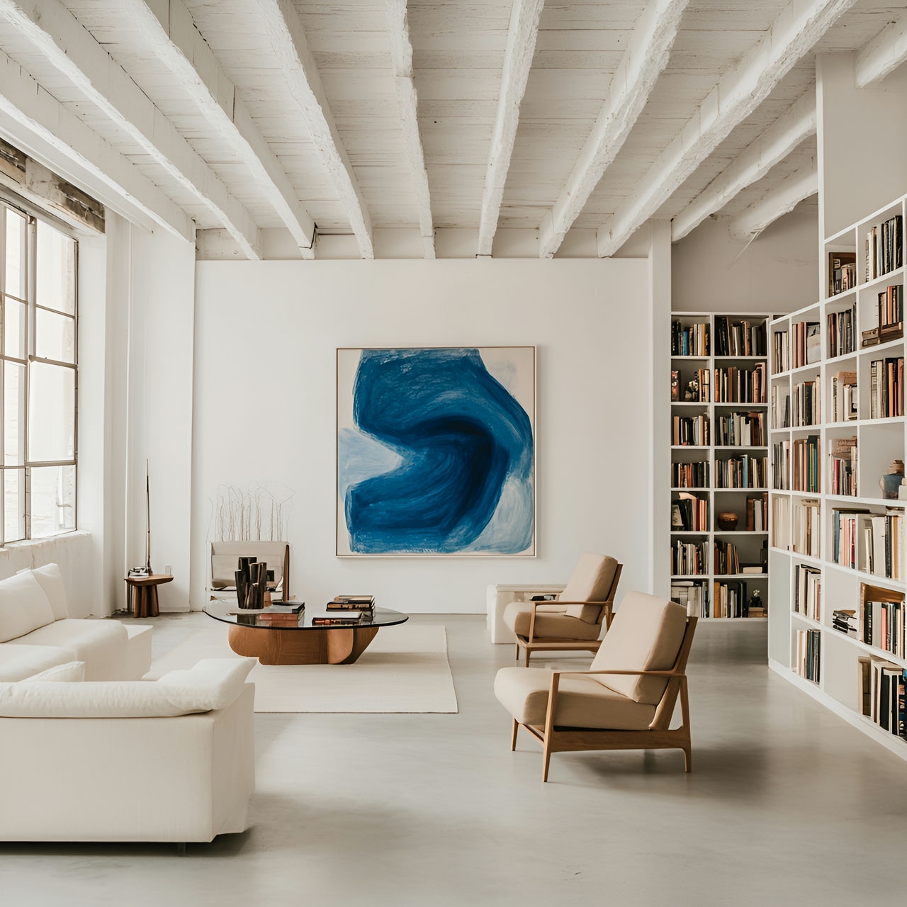 - Blanc : Les pièces de la galerie utilisent couramment le blanc, créant un arrière-plan neutre pour les œuvres d’art. Cette couleur ne rivalise pas avec les œuvres, permettant aux pièces de se démarquer. Les murs blancs reflètent uniformément la lumière, fournissant un éclairage constant crucial pour la visualisation de l’art.