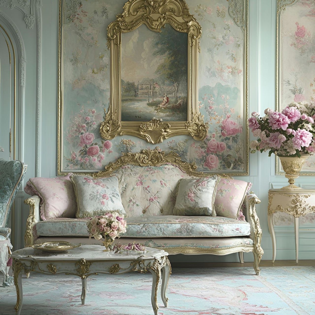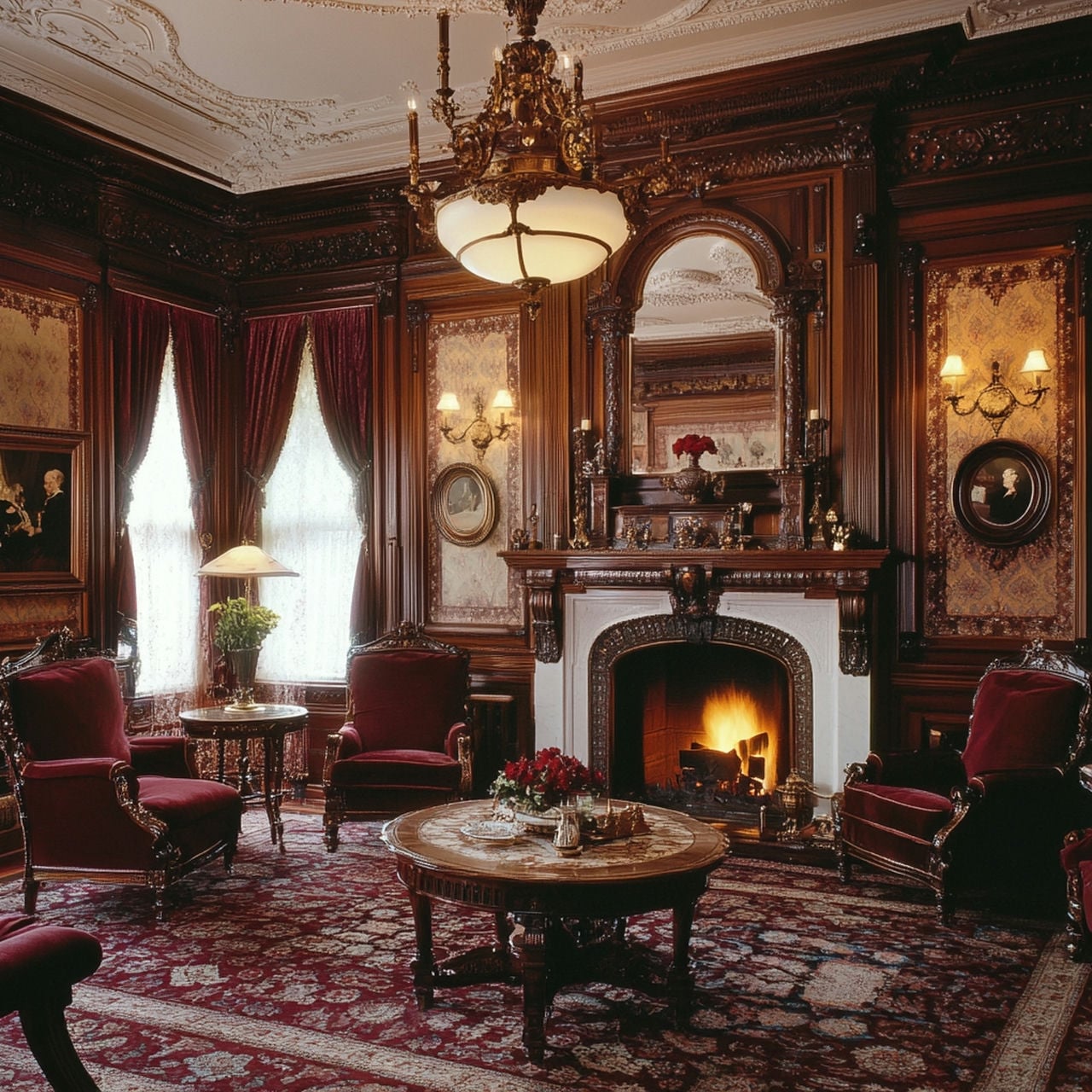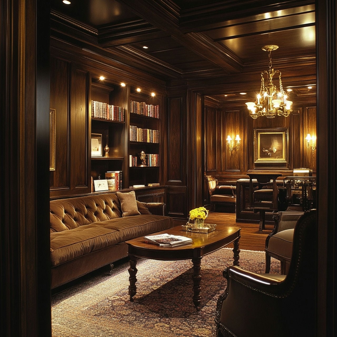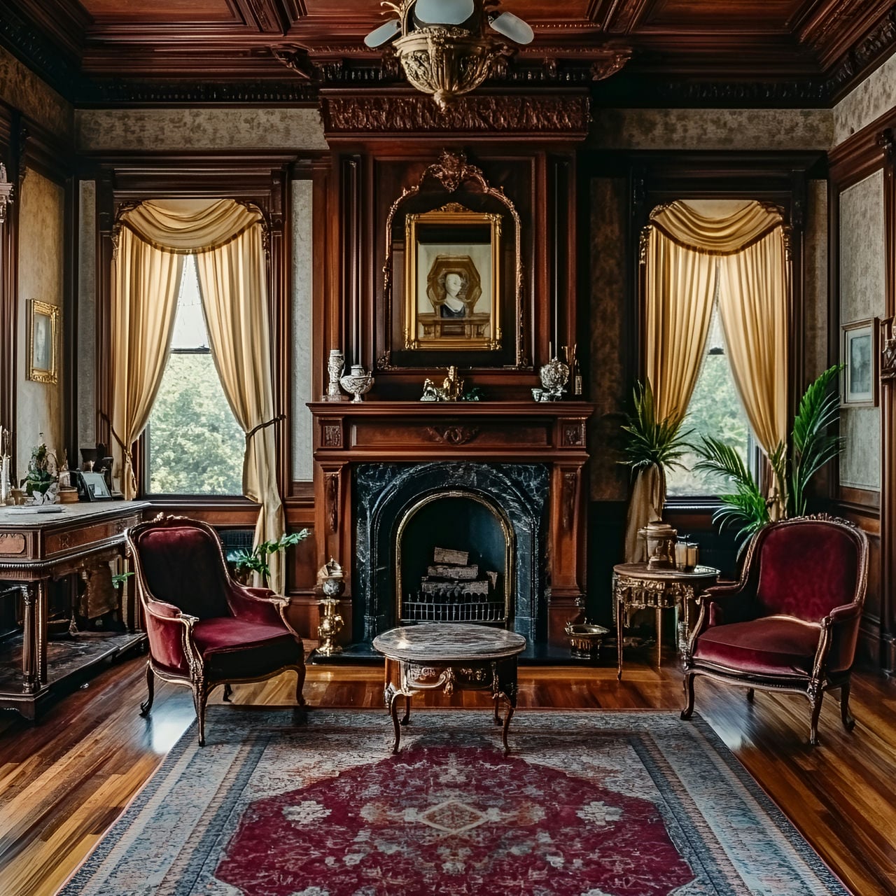 • Or ancien : L’or ancien évoque une opulence chaleureuse. Cette couleur complète parfaitement les boiseries sombres et les décors travaillés, renforçant l’élégance traditionnelle de la pièce.