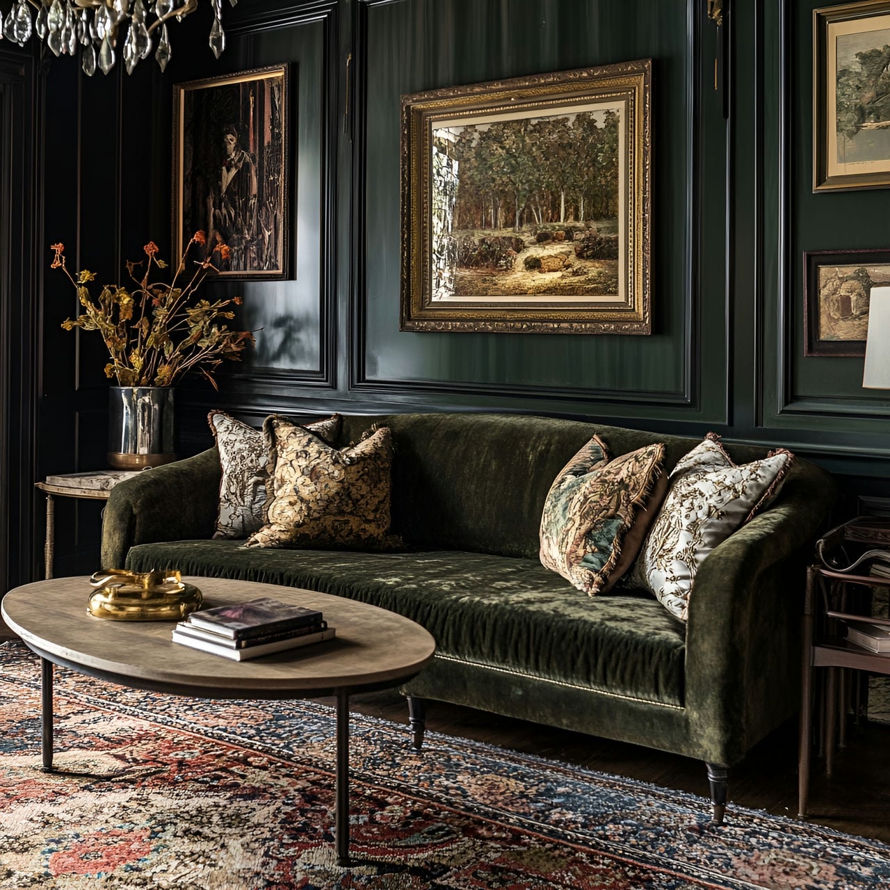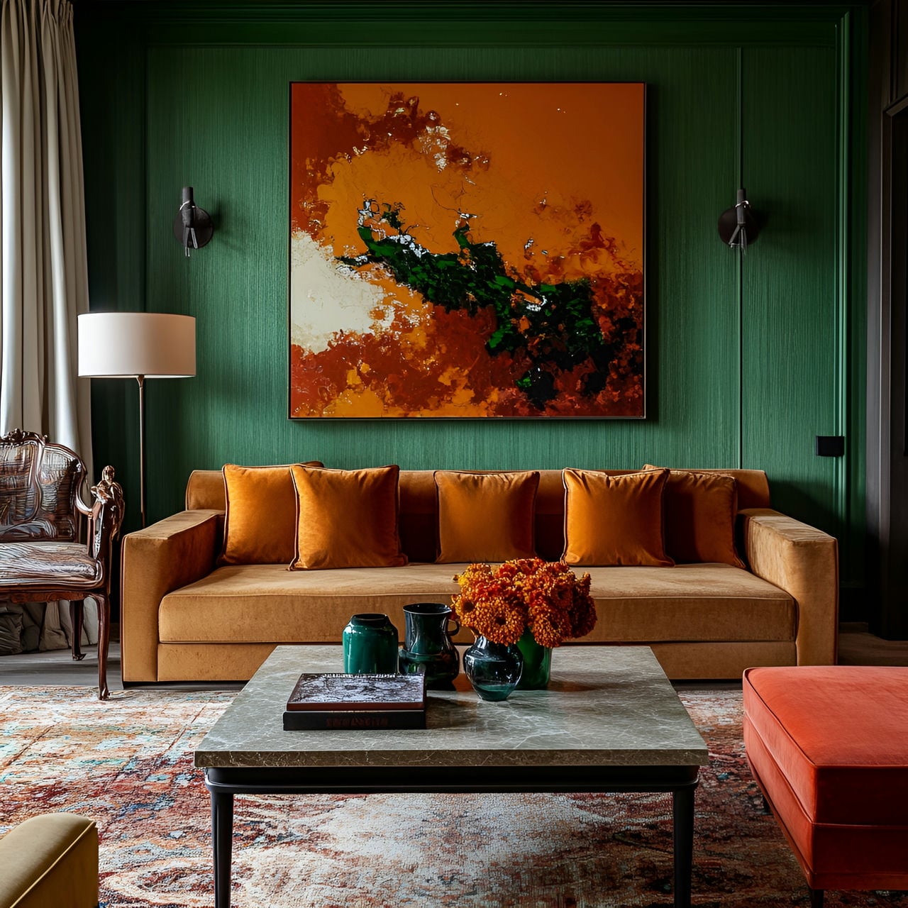 • Vert chasseur : Le vert chasseur apporte une dimension classique et intemporelle. Il se marie particulièrement bien avec les boiseries et les matières naturelles.