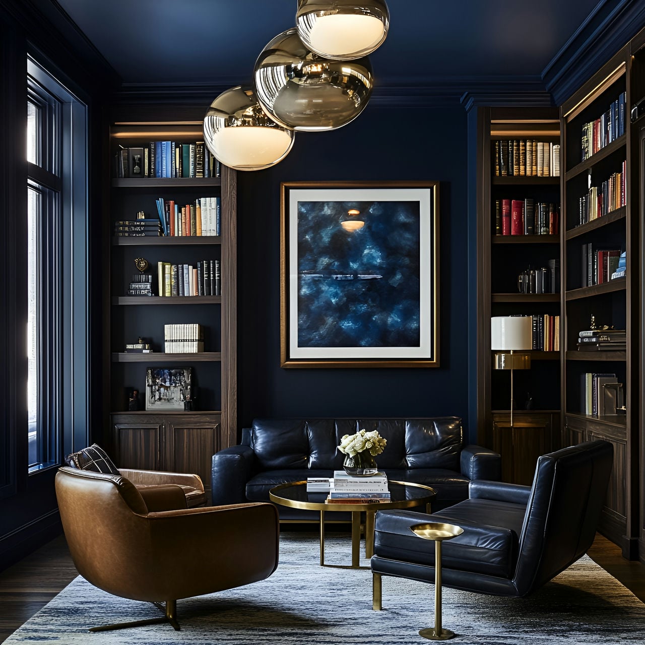 • Bleu marine royal : Le bleu marine royal est prisé pour sa profondeur et sa stabilité visuelle. Il confère une élégance intemporelle au salon de réception.