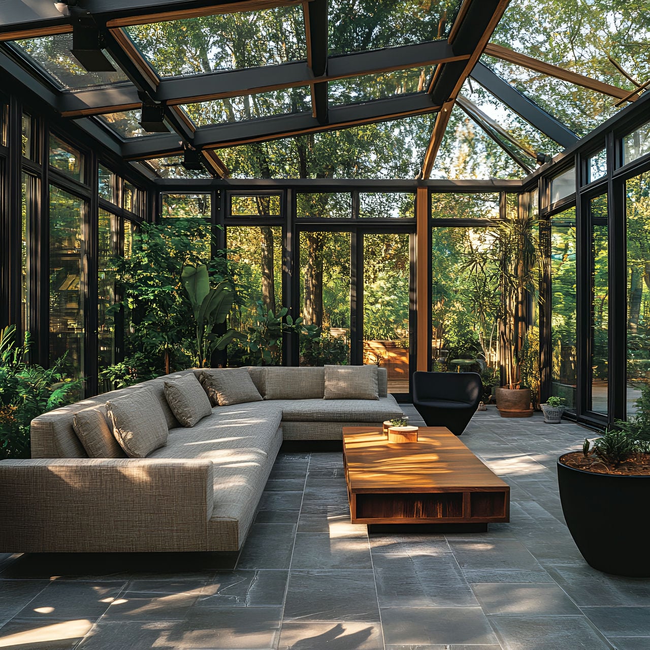 • Plantes : Les plantes jouent un rôle essentiel dans une véranda lumineuse, renforçant la connexion avec la nature et apportant fraîcheur et sérénité.